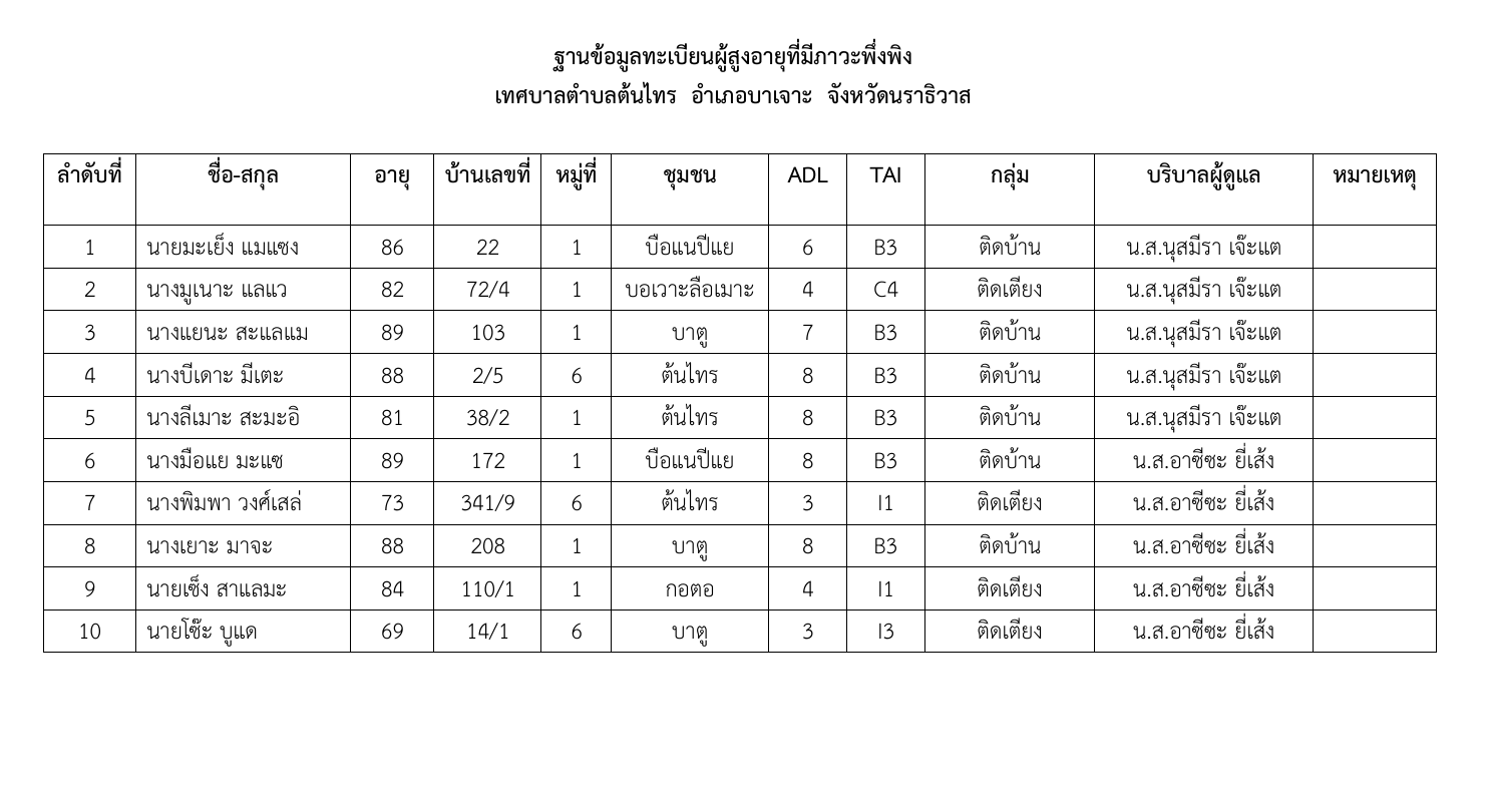 ฐานข้อมูลทะเบียนผู้สูงอายุที่มีภาวะพึ่งพิง